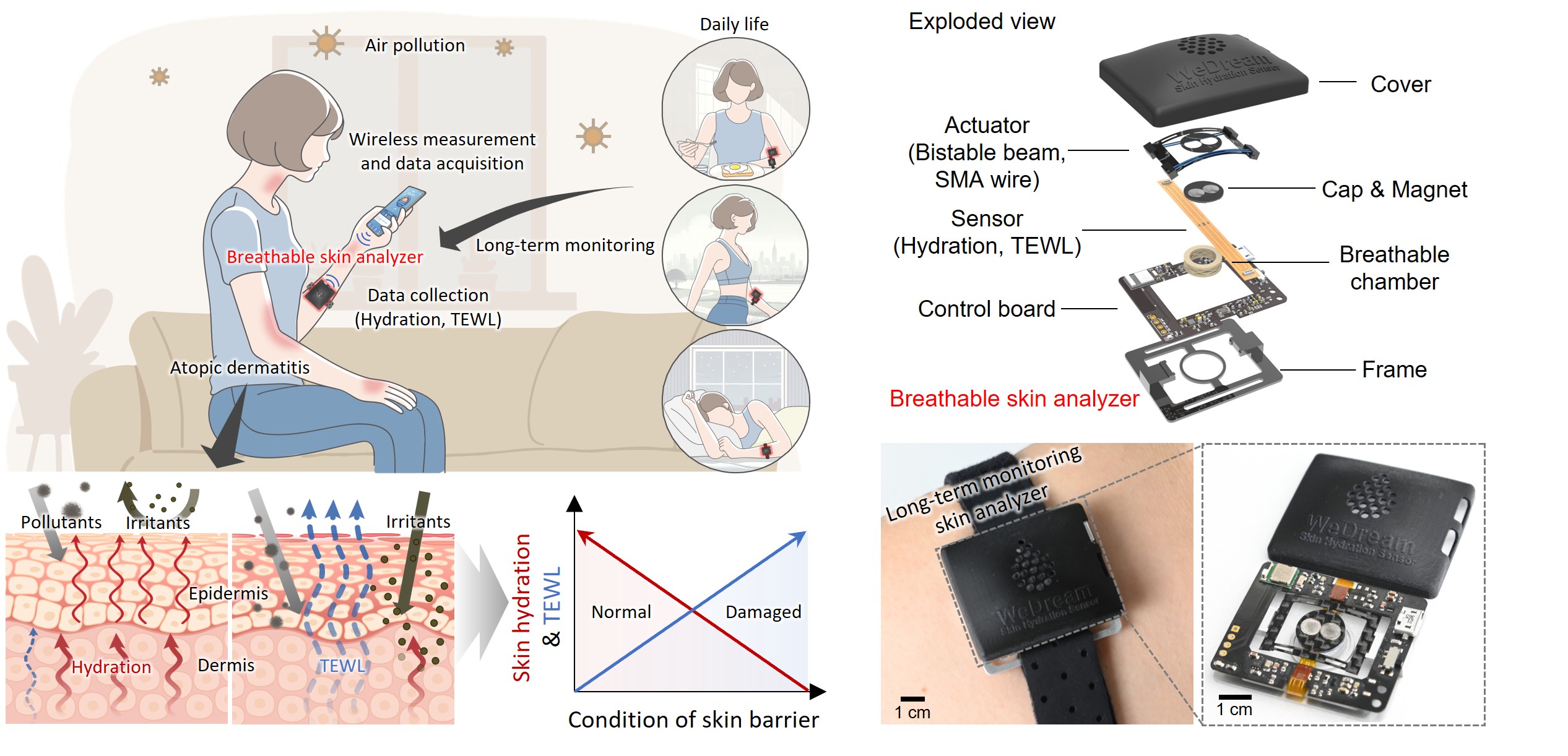 [POSTECH·아주대·연세대, 장기간 피부 건강 정밀 측정하는 ‘호흡하는 피부 분석기(BSA)’ 개발] 피부는 외부 환경으로부터 우리를 지켜주는 첫 번째 방패다. 그동안 미세먼지, 온도 변화, 습도 등 요인이 피부 건강에 어떤 영향을 미치는지 장기간 정밀하게 측정하기 어려웠는데, 최근 국내 연구팀이 이를 해결할 방법을 제시했다. 기계공학과 강대식 교수 연구팀이 아주대 기계공학과 한승용, 고제성 교수 연구팀, 연세대 홍인식 박사와 함께 피부 건강을 오랫동안 정확하게 측정할 ‘숨 쉬는 피부 분석기(Breathable Skin Analyzer, BSA)’를 개발했다. 이 연구는 피부 건강...
