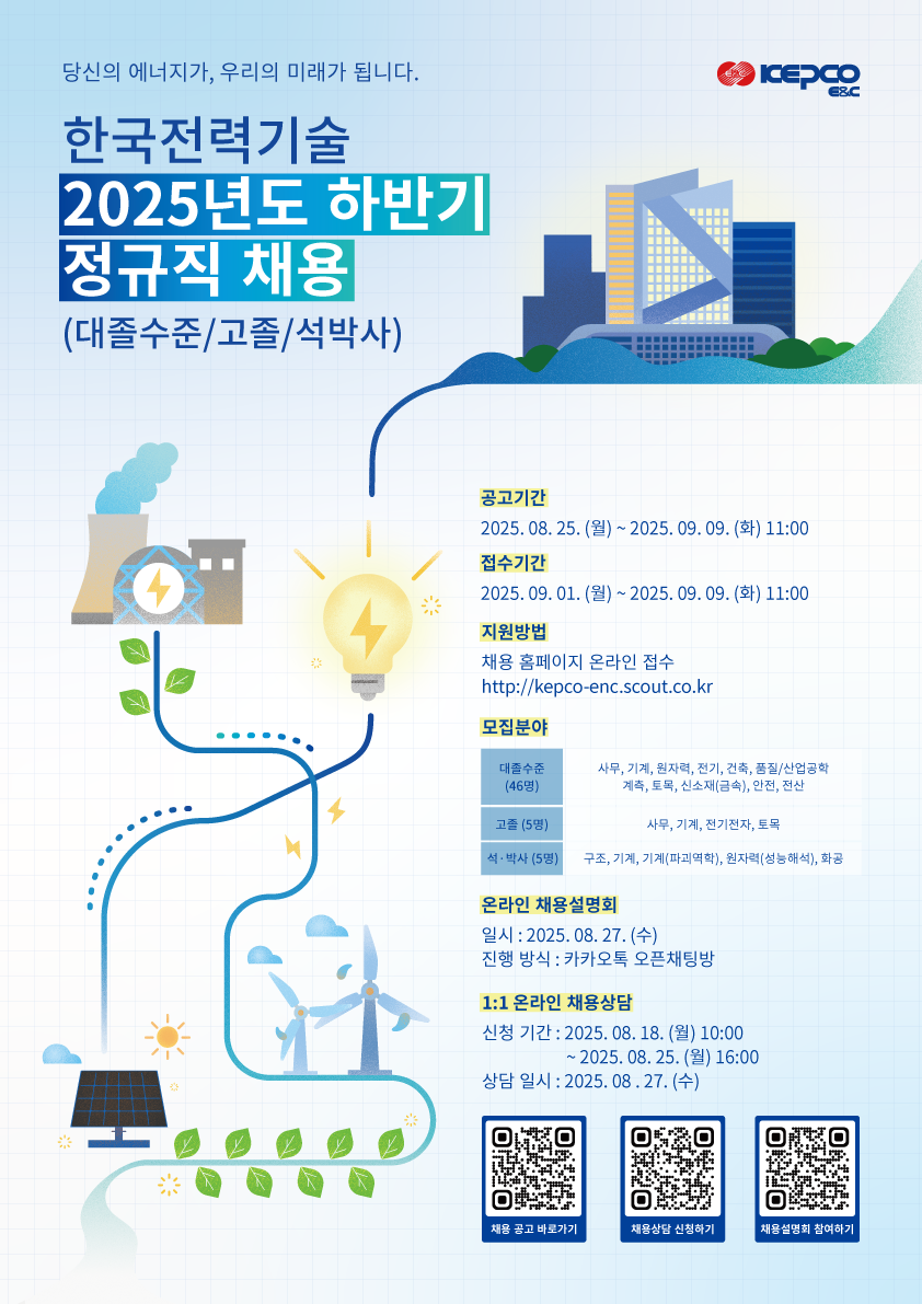 한국전력기술(주) 2025년도 하반기 정규직 채용